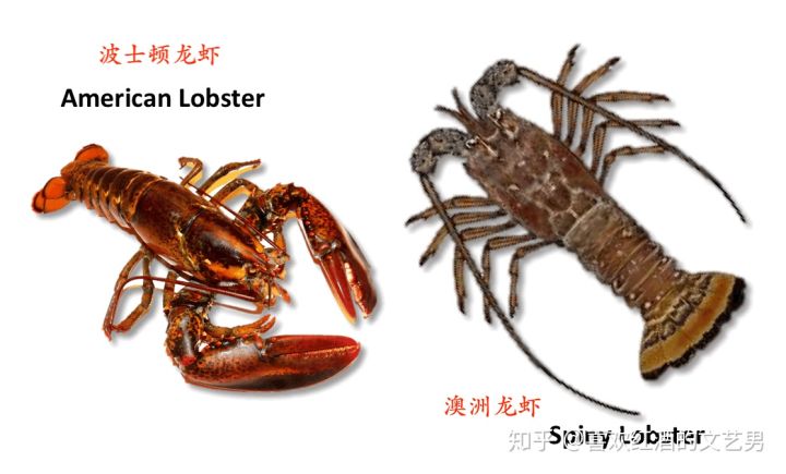 澳洲龙虾,生活在温暖凉爽的海域中,波士顿龙虾,从小生长在寒冷海水中。